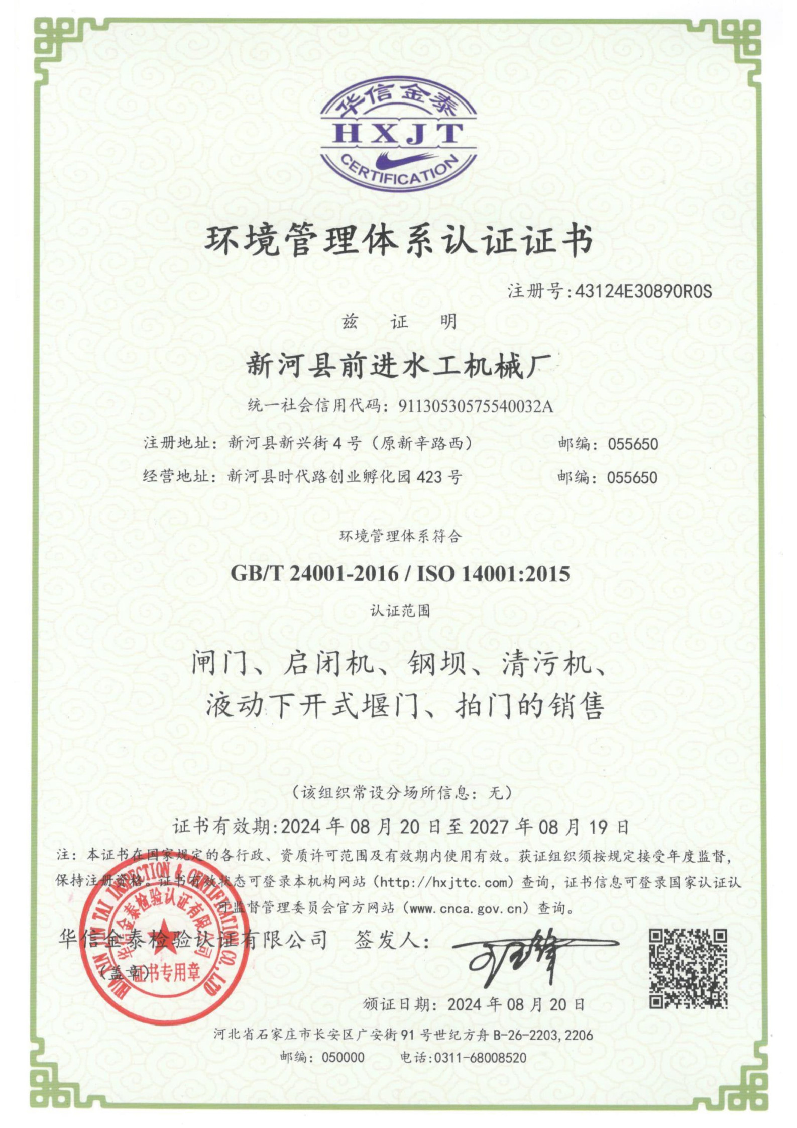 新河縣前進水工機械廠是一家專門從事水利工程設備研發(fā)生產的廠家,現有員工228人,各類高、中級專業(yè)工程技術人員近30人,技術生產工人180多人。公司占地面積14674平方米。公司擁有車、鉗、刨、銑、冷作、鈑金、鑄造等,工種齊全,加工能力和技術力量雄厚,并具備理化測試手段與儀器設備。前進水工專注景觀閘門,鋼壩,合頁壩,液壓升降壩,液壓閘門,臥倒門,一字門,人字門,液壓啟閉機,卷揚啟閉機,螺桿啟閉機,清污機,除污機,閘門,拍門等設備的研發(fā)與生產,是新河水利工程產品行業(yè)的領跑者,不僅在同行業(yè)群中揭起了一次又一次的技術革新,更為水利工程企業(yè)提供了更高更大的選擇平臺。